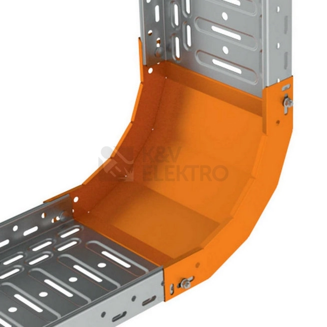 Stoupající oblouk 90° pro kabelové žlaby o rozměru 50x125 mm v povrchové úpravě sendzimir, slouží k přechodu trasy do vertikálního směru v úhlu 90°