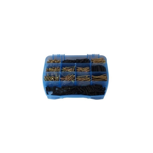 Sada praktického organizéru a 440 kusů pozinkovaných vrutů a 180 kusů univerzálních hmoždinek