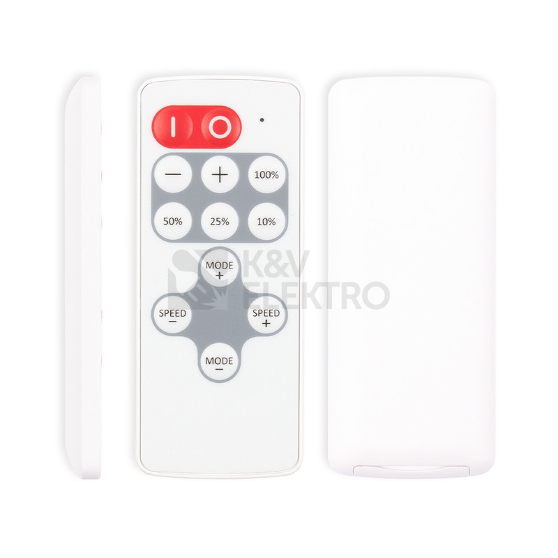 Sada RF dálkového ovládání pro řízení jasu jednobarevných LED pásků (dosah až 15 m), 1 zóna. LED indikace funkce, zabudované ochrany proti přehřátí, přetížení, zkratu. 8 módů blikání, pohasínání + 10 rychlostí. Rozměry dálkového ovladače cca 87×39×8mm (bez držáku), přijímače 87x24x15mm. Napájení 1xCR2032 baterie - je součástí balení. Max. zátěž: 10A (120W/12V, 240W/24V). DC5-24V. Magnetický držák na ovladač součástí balení. V případě výpadku si přijímač pamatuje poslední nastavenou hodnotu/režim.
