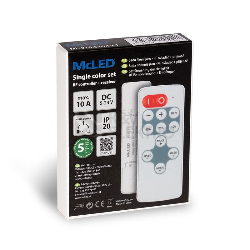 Ovládání LED pásku McLED ML-910.510.14.1 RF Nano pro jednobarevné LED pásky ovladač + přijímač