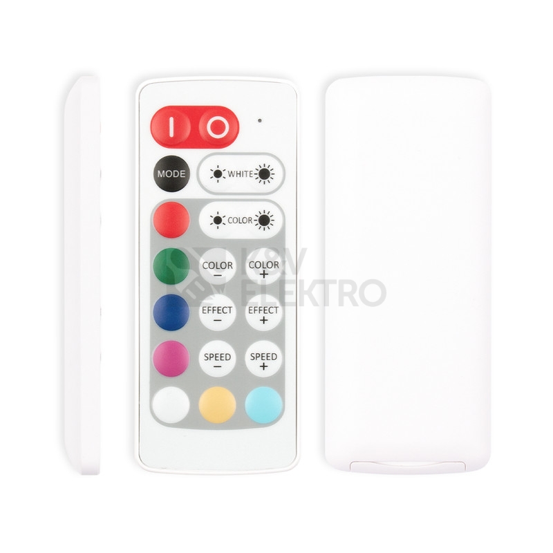 Sada RF dálkového ovládání pro řízení RGB+W LED pásků (dosah až 15 m), 1 zóna. LED indikace funkce, zabudované ochrany proti přehřátí, přetížení, zkratu. 34 módů blikání, pohasínání + 10 rychlostí, 30 barev. Rozměry dálkového ovladače cca 87×39×8mm (bez držáku), přijímače 87x24x15mm. Napájení 1xCR2032 baterie - je součástí. Max. zátěž: 3x2,5A+4A (138W/12V, 276W/24V). DC5-24V. Magnetický držák na ovladač součástí balení. V případě výpadku si přijímač pamatuje poslední nastavenou hodnotu/režim.