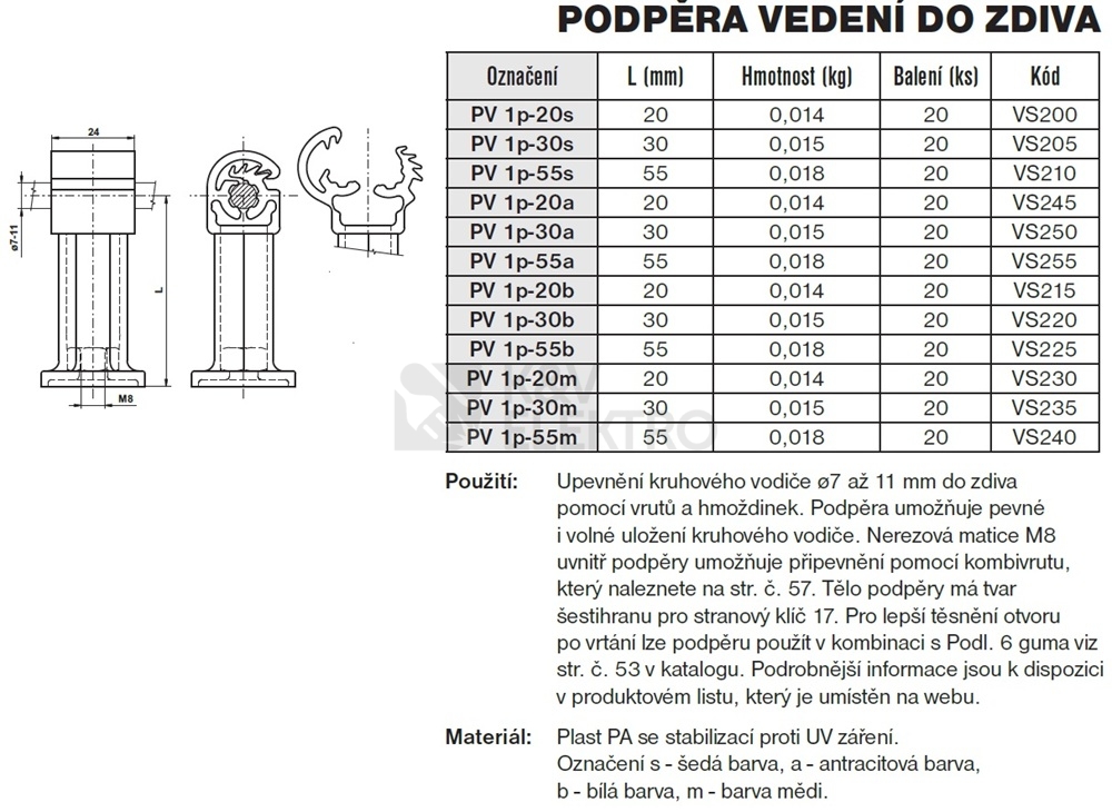 Rozměry vodiče:7-10 mm kulaté
