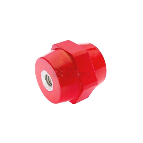 Podpěrný izolátor SI 1312312 - výška 50mm, závit M8, klíč 36, jmenovité napětí: 1,2/1,5 kV AC/DC.Izolátory SI jsou vyrobeny z polyesterového materiálu červené barvy, zesíleného skelnými vlákny. Na obou stranách izolátoru je zalisovaná vložka se závitem, vyrobená z galvanicky pozinkované oceli. Velmi dobré elektrické a mechanické vlastnosti izolátorů umožňují jejich použití i v obtížných provozních podmínkách, např. v prostředí s agresivními látkami, při vibracích a podobně. Odolnost proti hoření odpovídá normě UL 94-V0. Izolátory mohou být použity při provozních teplotách od -40°C do +130°C. Zkouška žhavou smyčkou je až na teplotu 960°C. Izolátory se vyrábí ve velikostech od 20 mm až po 70 mm a se závitem M4 až M12.