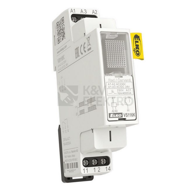 Pomocné relé Elko EP VS116K 1x16A přepínací AC 230V AC/DC 24V zelená je vhodné zejména pro aplikace jako pomocné ovládání osvětlení, signalizace, reléová stavědla, bojlery, HDO, přímotopy apod.