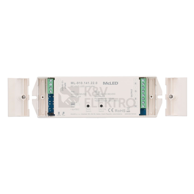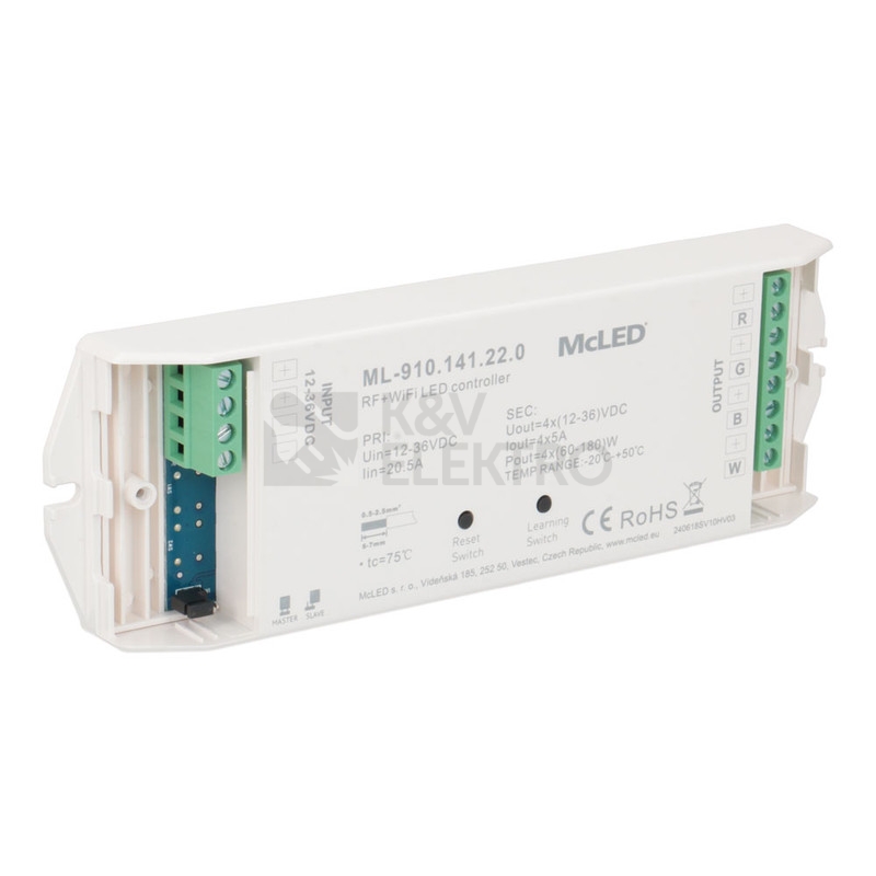 Přijímač řízení jasu RGBW McLED ML-910.141.22.0 RF a Wifi CCT 4 kanály 4x5A 12-36V