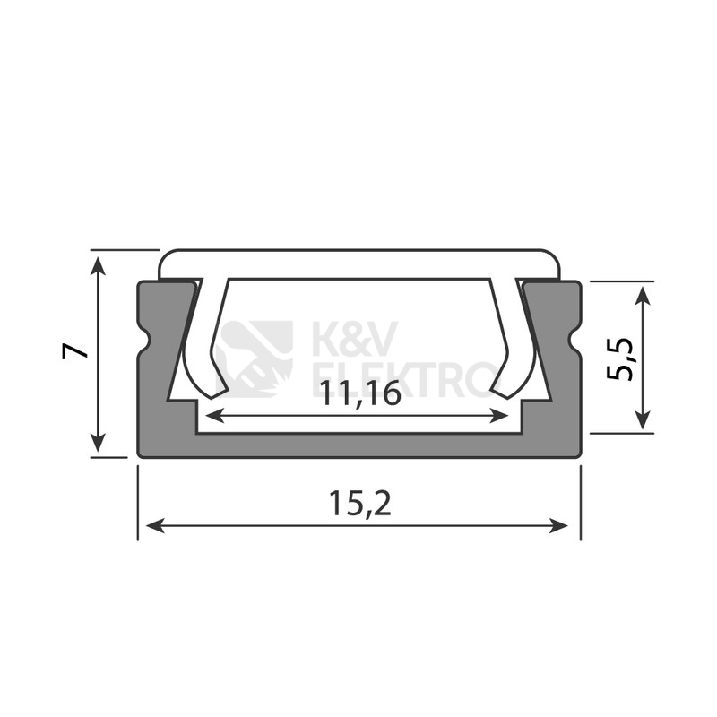 Rozměry průřezu tohoto hliníkového profilu jsou cca 15,21 x 7,04 mm. Do tohoto hliníkového profilu lze umístit LED pásek o maximální šířce 11 mm. Povrch tohoto hliníkového profilu je anodizován (eloxován), díky čemuž je odolnější jak proti povětrnostním vlivům, tak i proti mechanickému poškození.