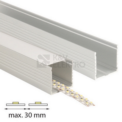 Přisazený hliníkový profil pro LED pásky, rozměry průřezu cca 35x35 mm. Součástí je mléčný difuzor, který lze do profilu nacvaknout. Tento profil je určen pro krytí a chlazení LED pásků do šíře 30 mm, případně dvou LED pásků do šíře 15mm. Upevnění k podkladu lze provést pomocí montážních úchytů, vrutů, lepidel. K profilu lze zakoupit úchyty a koncovky.