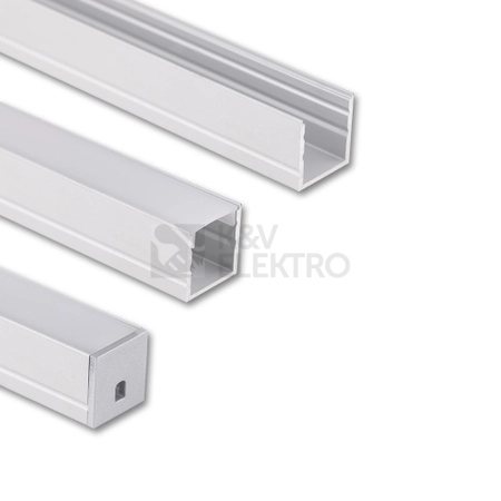 Přisazený hliníkový profil pro LED pásky, rozměry průřezu cca 15x15 mm. Součástí je mléčný difuzor, který lze do profilu nacvaknout. Tento profil je určen pro krytí a chlazení LED pásků do šíře 12 mm. Upevnění k podkladu lze provést pomocí montážních úchytů, vrutů, lepidel. K profilu lze zakoupit úchyty a koncovky.