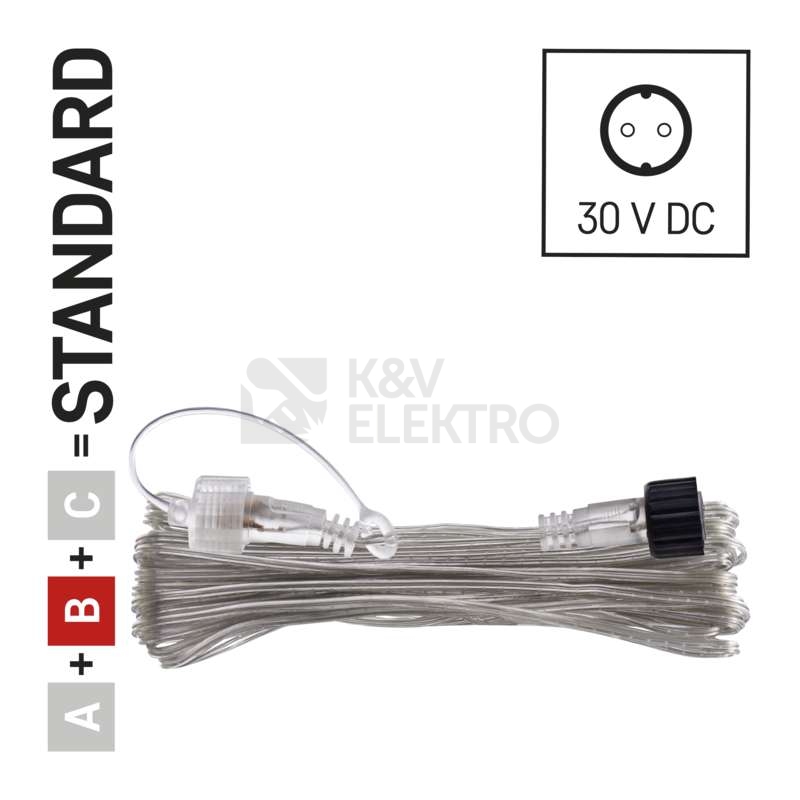 Prodlužovací kabel EMOS Connecting D1ZB02 ZY2153 transparentní 10m pro spojovací LED vánoční řetězy splňuje příslušné normy ČSN.
