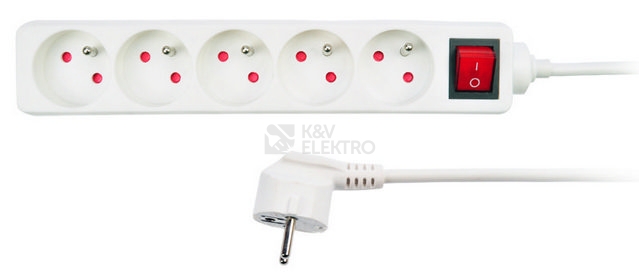Prodlužovací kabel Solight 1,5m/5zásuvek s vypínačem bílá PP50
