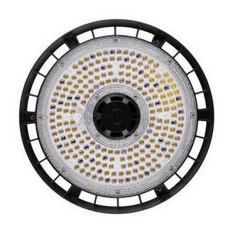 LED průmyslové svítidlo 100 W, černý, 230 V, IP65, 5000 K, světelný tok 14830 lm, vyzařovací úhel 60 °, CRI80, životnost > 50.000 h, rozměry ø 280 x 159 mm, materiál hliník/plast, stmívatelné 0-10 V, PF>0,93, ke svítidlu lze dokoupit Al nebo PC reflektor a pohybové čidlo.