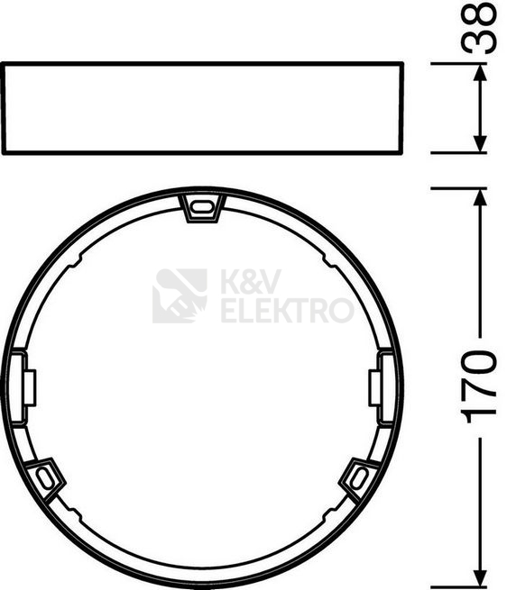 Povrchový montážní rámeček, kruhový. Vlastnosti produktu: Nízká montážní hloubka. Robustní polykarbonátové pouzdro. Včetně montážního příslušenství. Výhody produktu: Kabelový vstup na straně elektrického připojení s nízkým profilem. Snadná instalace díky přiložené šabloně pro vrtání otvorů. Oblasti použití: Všeobecné osvětlení. Veřejné prostory. Schodiště. Chodby. Vestibuly. Prodejny.