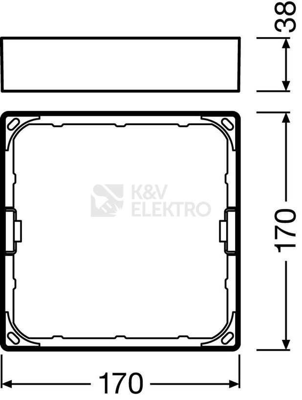 Povrchový montážní rámeček, čtvercový. Vlastnosti produktu: Nízká montážní hloubka. Robustní polykarbonátové pouzdro. Včetně montážního příslušenství. Výhody produktu: Kabelový vstup na straně elektrického připojení s nízkým profilem. Snadná instalace díky přiložené šabloně pro vrtání otvorů. Oblasti použití: Všeobecné osvětlení. Veřejné prostory. Schodiště. Chodby. Vestibuly. Prodejny.