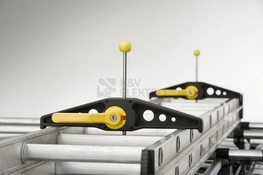 Kombinace speciálního tvrzeného plastu s nerezovým držákem zajišťuje snadné, rychlé a bezpečné upevnění žebříku na každém střešním nosiči.