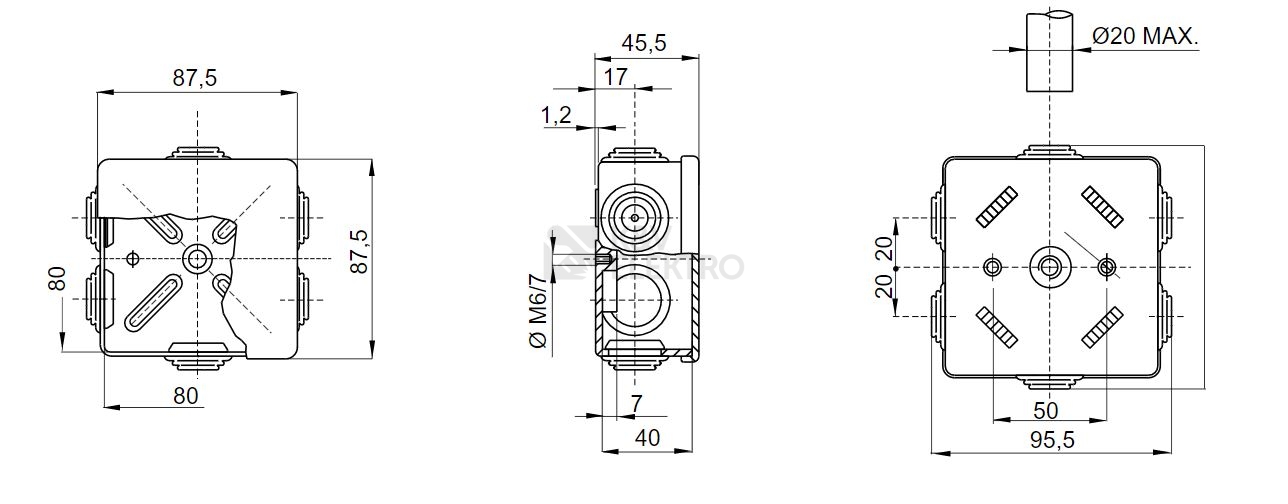 Krabice GW44003 s vývodkou IP44 87x87x45mm