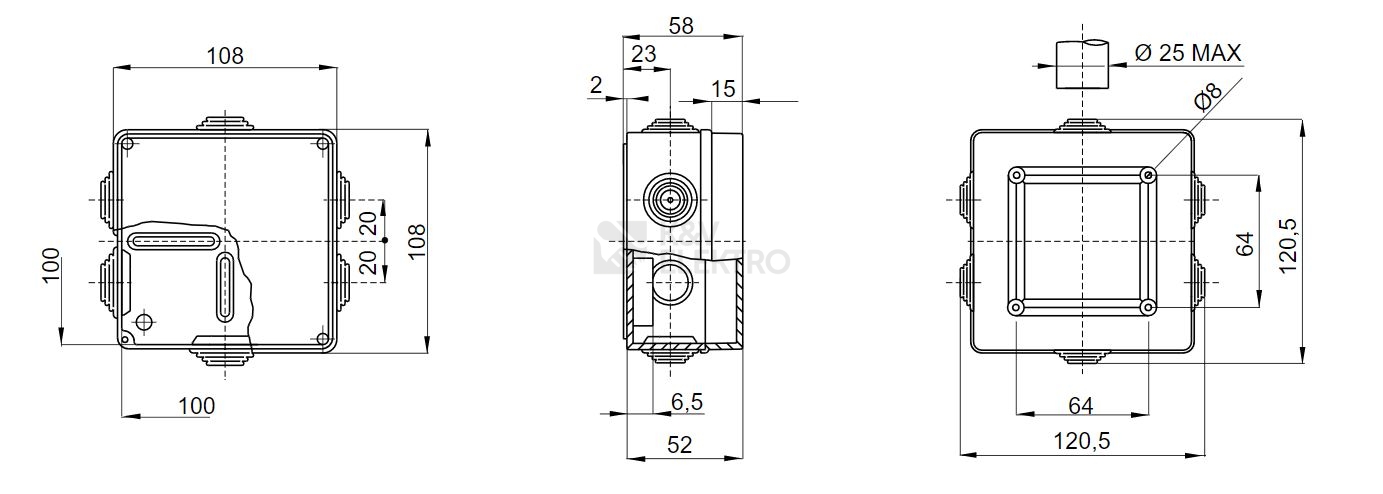 Krabice GW44004 s vývodkou IP55 108x108x58mm