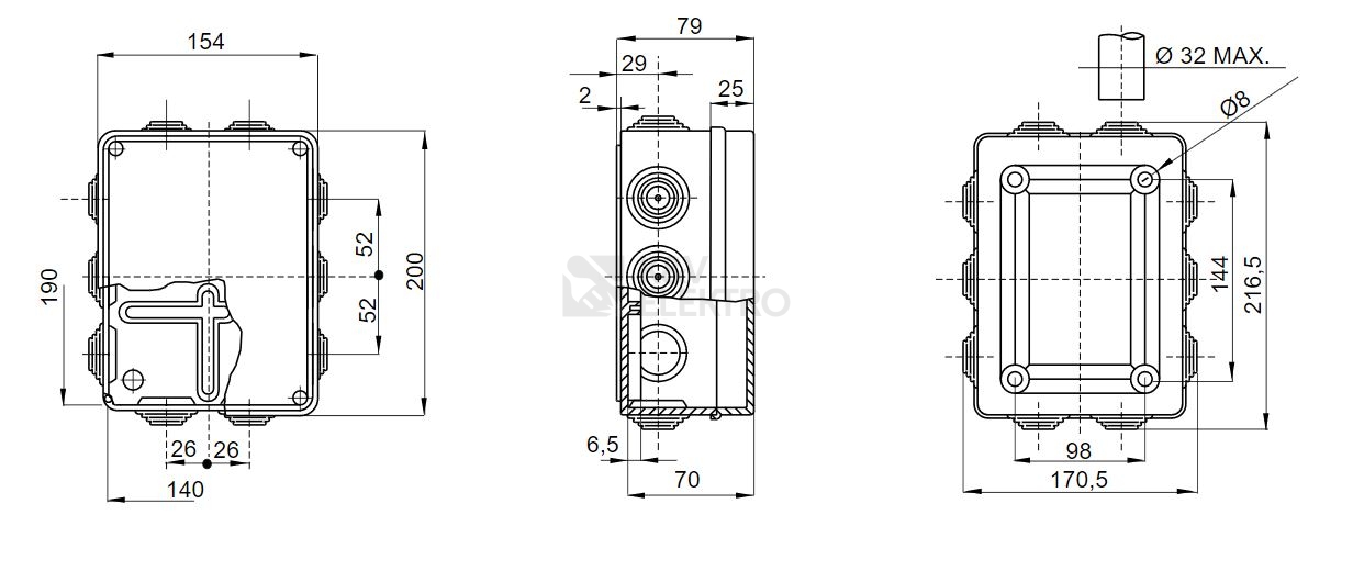 Krabice GW44007 s vývodkou IP55 200x154x79mm