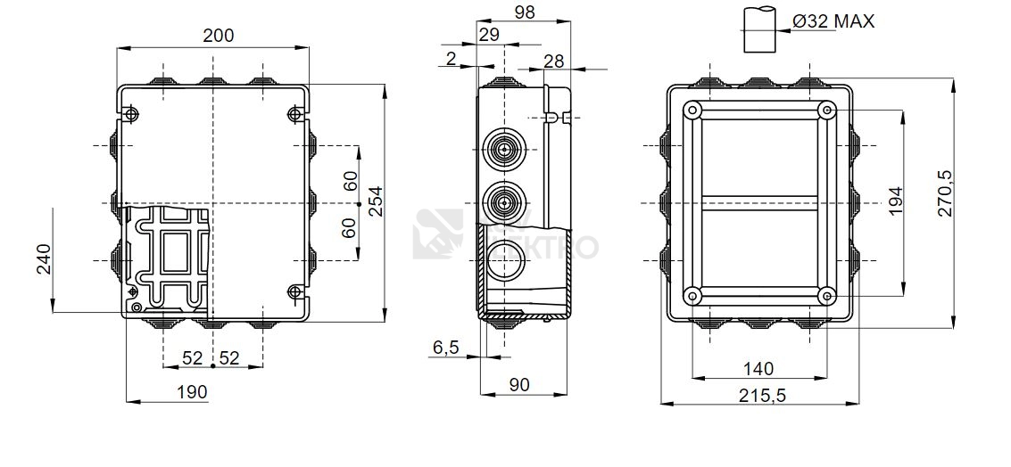 Krabice GW44008 s vývodkou IP55 254x200x98mm