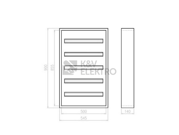 PARAMETRY: krytí IP 30, barva šedá, hloubka 140 mm, 24 TE v řadě, 5 přístroj. lišt.