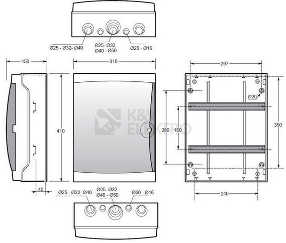 - hladké boky (stěny) - pro vyvrtání otvoru a osazení vývodkou (vrchní a spodní strana má stěny s předlisovanými vstupy pro vyvrtání vstupního otvoru a následného osazení příslušnou vývodkou)