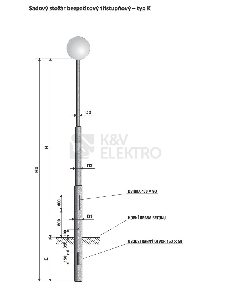 Specifikace sadového stožáru bezpaticového třístupňového - typ K 6 AMAKO 0606013360
