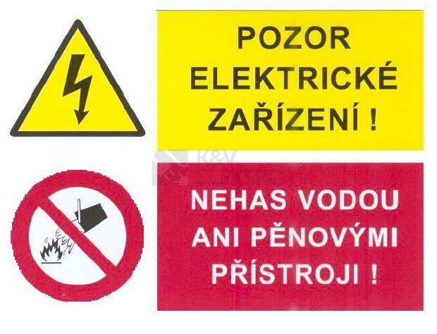 Samolepka pozor elektrické zařízení nehas vodou ani pěnovými zařízeními 75x105mm STH A7