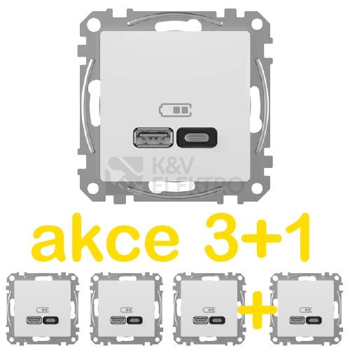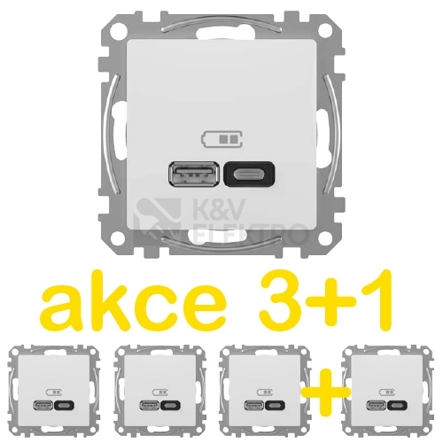Schneider Electric Sedna Design/Elements rychlonabíječka USB A+C 3A 45W bílá balení 3+1ks zdarma KIT_SDD111404X4