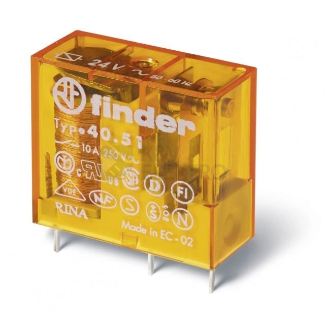 Spínací relé paticové Finder 1P (jednořadé) 10A 24VAC 40.51.8.024.0000
