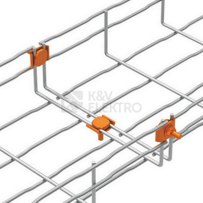 Spojka určená pro spojování drátěných žlabů, umožňuje jednoduché a spolehlivé spojení drátěných kabelových žlabů, povrchová úprava zinkochromát