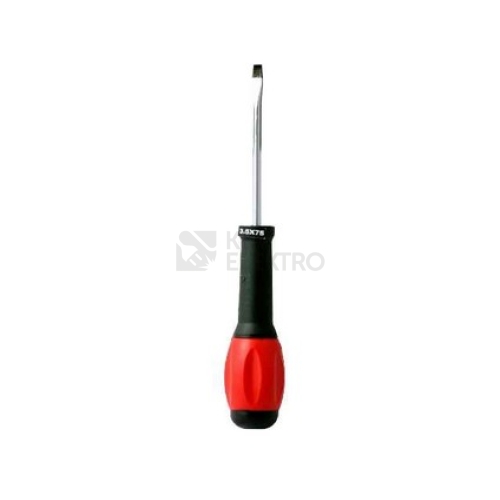 Šroubovák plochý rozměry: 8,0 x 160 Kovový dřík šroubováku je vyroben z kvalitní chromvanadiové oceli, kalený hrot je magnetický, kombinace polypropylenu a pryže na rukojeti a její ergonomický tvar zaručuje dobré antiskluzové vlastnosti a dobrou odolnost vůči mazadlům a chemikáliím.