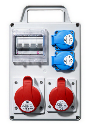 Staveništní neboli stavební rozvaděč, je určen k měření a napájení náročnějších elektrických přístrojů, stavební techniky i ručního elektrického nářadí v terénu, kde je třeba ochranné krytí alespoň IP44. Volit můžeme mezi zásuvkovými skříněmi na stěnu, či staveništními přenosnými rozvaděči.