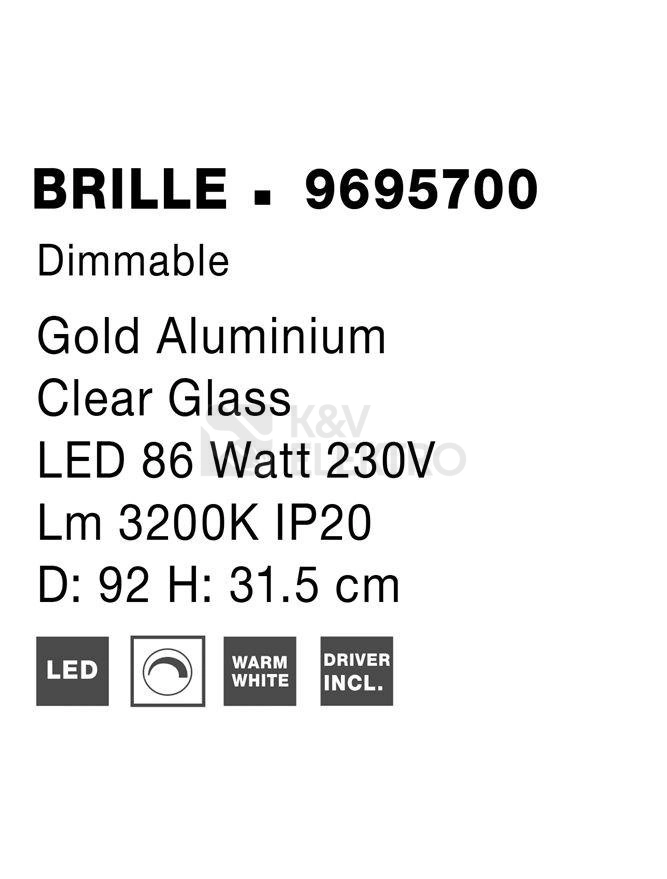 NOVA LUCE BRILLE 90W představuje dokonalou kombinaci designerského zpracování a praktičnosti, vhodnou pro středně velké a velké interiéry. Díky stmívatelným funkcím Triac a elegantní zlaté povrchové úpravě získá prostor sofistikovaný vzhled. Zkombinujte toto svítidlo s dalšími svítidly ze sekce designová svítidla a pro další inspiraci vám doporučujeme si prohlédnout další stropní a nástěnná svítidla, případně se podívejte na naše kompletní portfolio interiérových svítidel a osvětlení včetně světelných zdrojů.