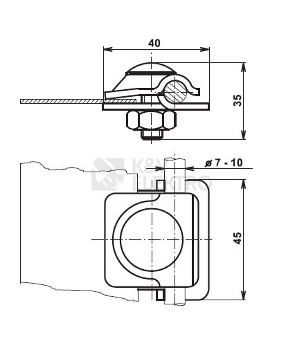 Svorka univerzální s jednou příložkou SUA TREMIS V005 zajišťuje odolnost proti korozi a mechanickému poškození díky rozsahu průměru vodiče 7-10 mm a kvalitnímu materiálu (ocel se žárovým pozinkováním). Kulová hlava upevňovacího šroubu usnadňuje utahování bez poškození vodiče, i když je vodič hladký a kruhového průřezu