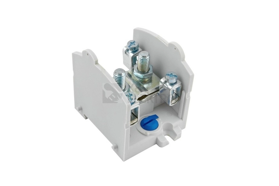 Stoupačková/průchozí svorkovnice F&F OBL 70/25-1 v modrém provedení využije připojení vodiče do 70 mm² a slouží k odbočování ve stoupacích vedeních. Krytá konstrukce s bočním připojením a montáží na DIN lištu či panel zjednoduší instalaci v rozvaděčích i společných šachtách.