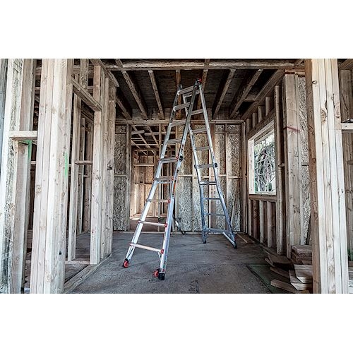 Leveler ™ Používání žebříku venku vždy mělo své výzvy, ale Little Giant® Leveler ™ tuto zkušenost mění. Ať už pracujete na nerovném terénu, nebo postavíte žebřík na schodiště, Leveler to zvládne. Leveler splňuje nebo překračuje všechny standardy OSHA a ANSI s nosností 150 kg ve všech konfiguracích. V konfiguraci štafle pojme 150 kg na obou stranách. Nastavitelné nožičky Ratchet ™ Nerovnoměrný terén? Není problem. S nožičkami Ratchet ™ můžete nastavit nohy žebříku během několika sekund, což vám umožní stabilizovat žebřík na nerovném povrchu. Zatahovací nohy přinášejí více než 18 cm vyrovnání. Až 4 možnosti žebříku za cenu jednoho !! Tento model umožňuje z jednoho žebříku několika jednoduchými pohyby vytvořit dva samostatné A žebříky. Když vysunete ze základního žebříku vložené stojny a spojíte je produktem art. č. 26999 ( kozlíkový držák) můžete si vytvořit dva samostatné A žebříky. Pro práci více lidí, nebo můžete použít jako kozu nebo lešení s pomocí teleskopické plošiny PLANKS. Tyto vysunuté stojny se zvýšenou opatrností můžete také použít jako samostatné žebříky pro polohu opření. Vznikne Vám tak jeden menší žebřík s možností většiny konfigurací a dva samostatné žebříky v poloze opření, nebo jejich kombinace. Vícepolohový žebřík Leveler je žebřík, který vám pomůže snadno dokončit jakýkoli daný úkol. Sestavte žebřík v různých konfiguracích, které vyhovují projektu, jako jsou štafle, výsuvný žebřík, na schodiště, 90° poloha nebo lešení *. Je to rychlé a snadné. * Plošina lešení není součástí dodávky