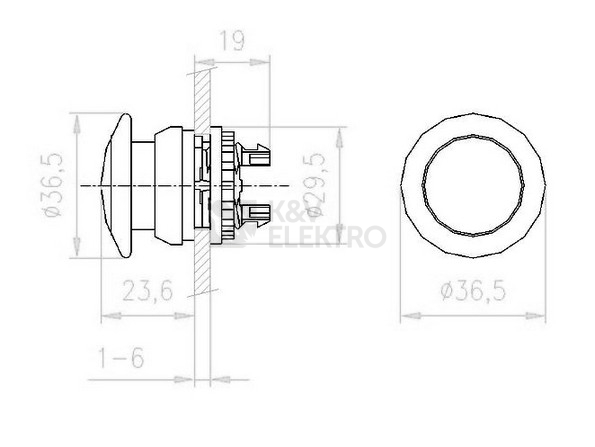 Tlačítko hřibové červené bez aretace EATON M22-DP-R-X0 216720