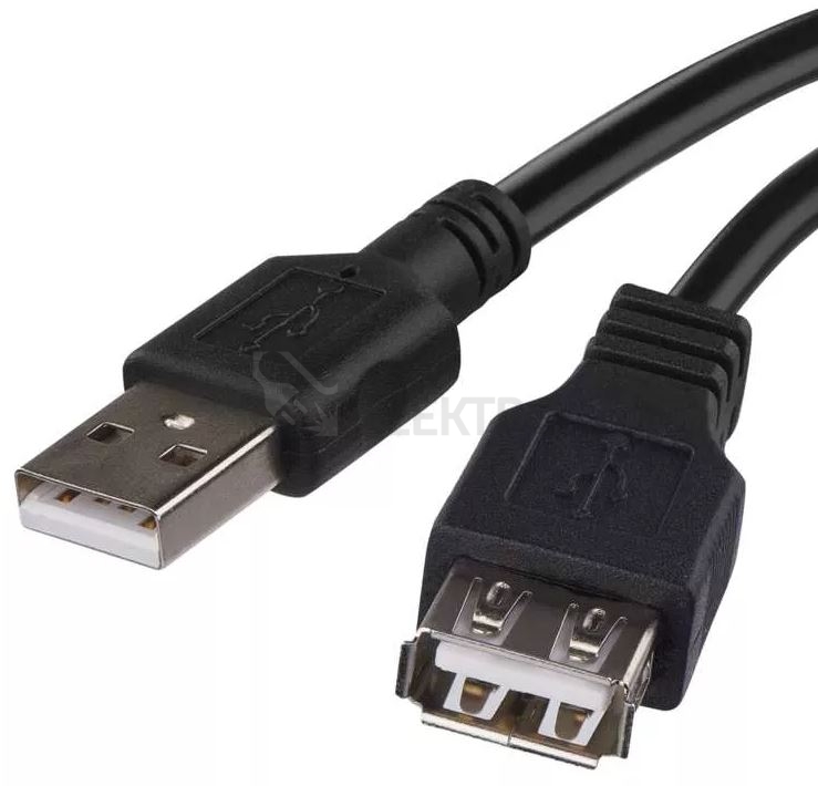 USB kabel 2.0 s vidlicí USB A a zásuvkou USB A. Délka kabelu je 2 m. USB kabel je vhodný pro PC periferní zařízení. Kabel je plně stíněný pro redukci elektromagnetického rušení. Kabel má černou barvu.