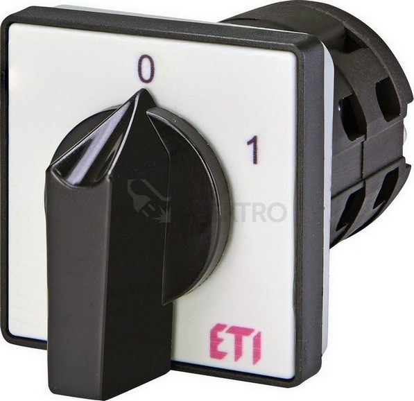 Vačkový spínač ETI CS 16 10 U 16A/3P 0/1 004773017 slouží jako ON-OFF spínač s přepínacím úhlem 60° pomocí otočné páčky.