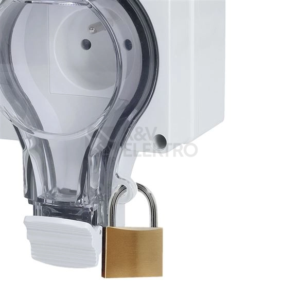 Víka zásuvek lze indiviudálně uzamknout visacím zámkem, což chrání proti nechtěné manipulaci a zvyšuje bezpečnost. Prodloužený kryt chrání část kabelu a zároveň slouží i jako páka ke snadnějšímu uzavření víka. Gumové těsnění a zátky zajišťují dokonalé utěsnění proti vodě a prachu. Konstrukce je navržena tak, aby odolala intenzivním klimatickým podmínkám, to zajišťuje dlouhodobou spolehlivost a bezpečnost při používání.