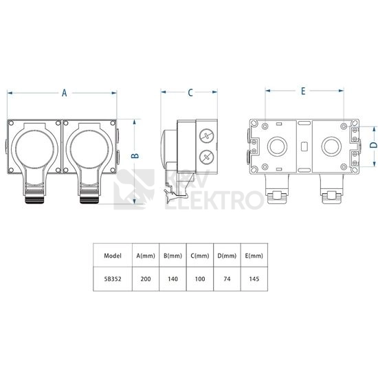 - šroubovací vstup/výstup 2x M20x1,5 včetně vodotěsných šroubovacích zátek, k propojení s dalšími zásuvkami nebo jinou elektroinstalací