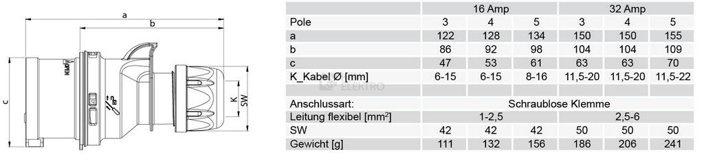 VIDLICE UHLOVA 16A/3P 230V IP44 013-6TT