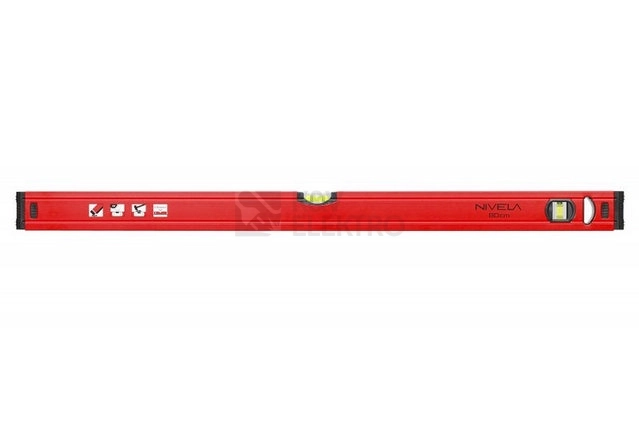 Vodováha se dvěma libelami přesnost 1 mm / 1 m hliníkový profil - síla stěny 1,4 mm optická libela s fluorescenční kapalinou - lepší viditelnost v horších světelných podmínkách vnější rysky na libele pro sklon 2 % gumové koncovky - ochrana při pádech