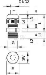 Kabelová vývodka s připojovacím závitem PG kloboučkového tvaru, pro odbočné krabice, pouzdra, rozvodné skříně v soukromé i průmyslové oblasti. S odlehčením tahu a integrovaným těsnicím břitem, zkoušena podle normy DIN EN 62444. Třída ochrany IP68. Lze použít od –20 °C do +65 °C.