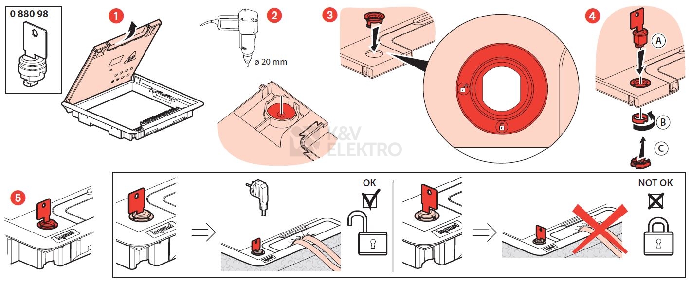 Zámek s klíčem pro plastové podlahové kryty Legrand 088098