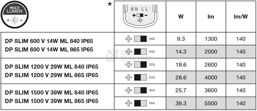 Tenké svítidlo odolné proti vlhkosti. Vlastnosti výrobku: Vysoká světelná účinnost: až 140 lm/W. Životnost (L80/B10): až 50 000 h (při 25 °C). Materiál pouzdra a difuzoru: polykarbonát (PC). Funkce Multi Lumen: volitelné stupně výkonu. Vyzařovací úhel:... číst více
