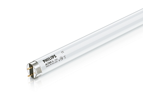 Speciální aktinická zářivková trubice TL-D o příkonu 15W, celková délka včetně kolíků 451,6mm.