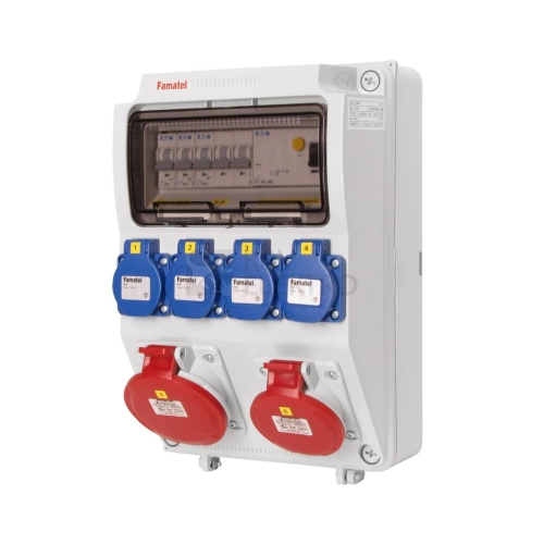 Zásuvková skříň FAMATEL v1116-ZSF40101000.1 /3958 IP54 jištěná s chráničem 40/4/003 (ekonomická varianta)