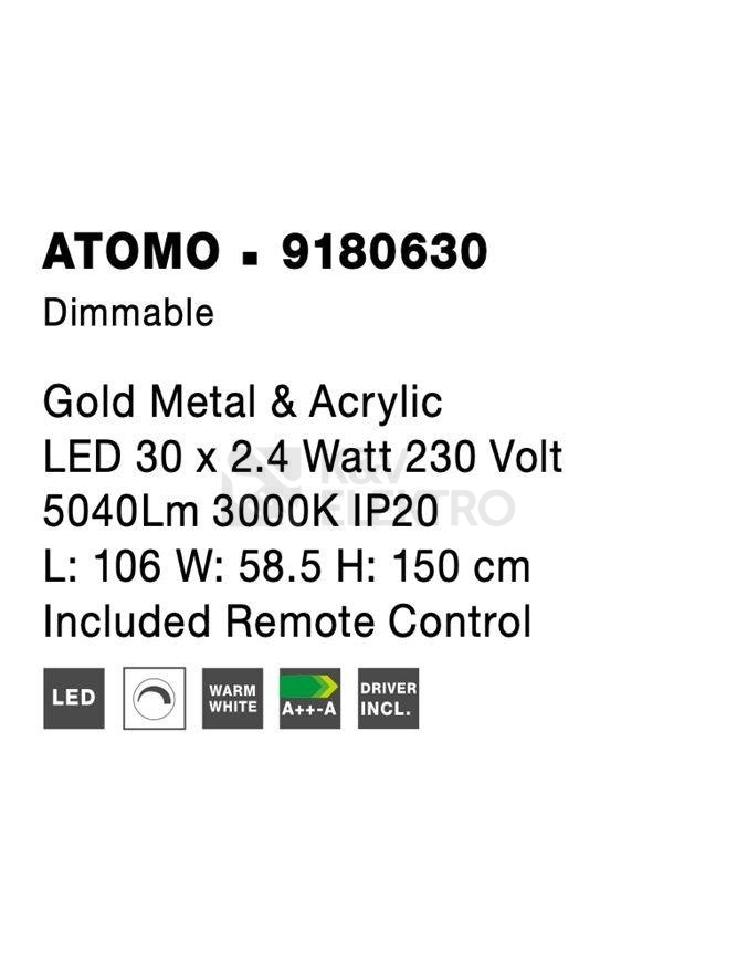 Závěsné LED svítidlo NOVA LUCE ATOMO 84W 3000K 9180630 stmívatelné Triac disponuje dobrým poměrem cena/výkon od prověřeného výrobce NOVA LUCE. Další informace k produktu naleznete níže.