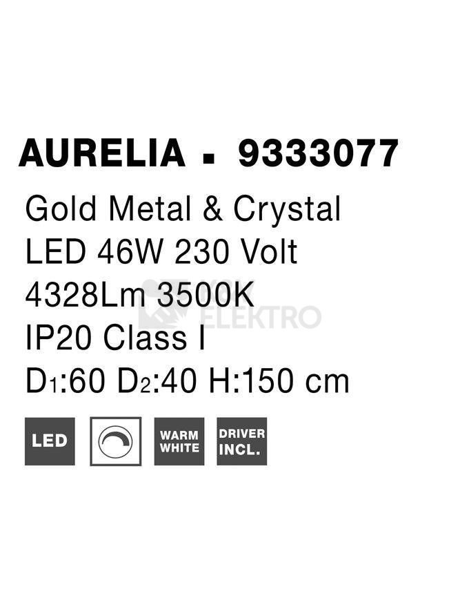 Závěsné LED svítidlo NOVA LUCE AURELIA 46W 3500K 9333077 stmívatelné Triac disponuje dobrým poměrem cena/výkon od prověřeného výrobce NOVA LUCE. Další informace k produktu naleznete níže.