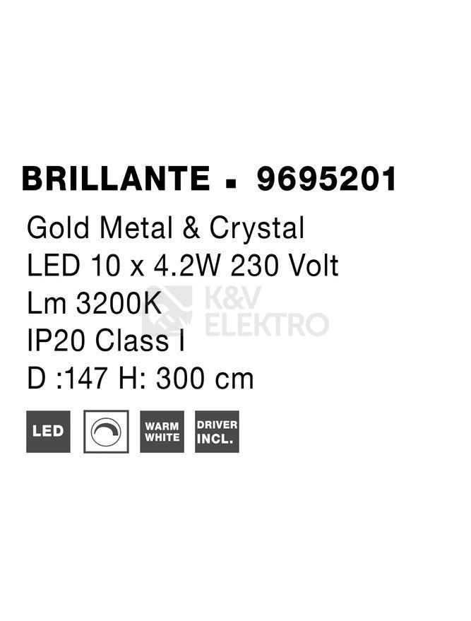 Závěsné LED svítidlo NOVA LUCE BRILLANTE 134W 3200K 9695201 stmívatelné Triac disponuje dobrým poměrem cena/výkon od prověřeného výrobce NOVA LUCE. Další informace k produktu naleznete níže.